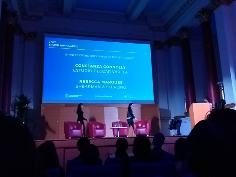 Constanza Connolly abogada senior de Beccar Varela recibió el premio "Abogado del Año" en los premios TrustLaw 2017, la celebración anual de la Fundación Thomson Reuters.