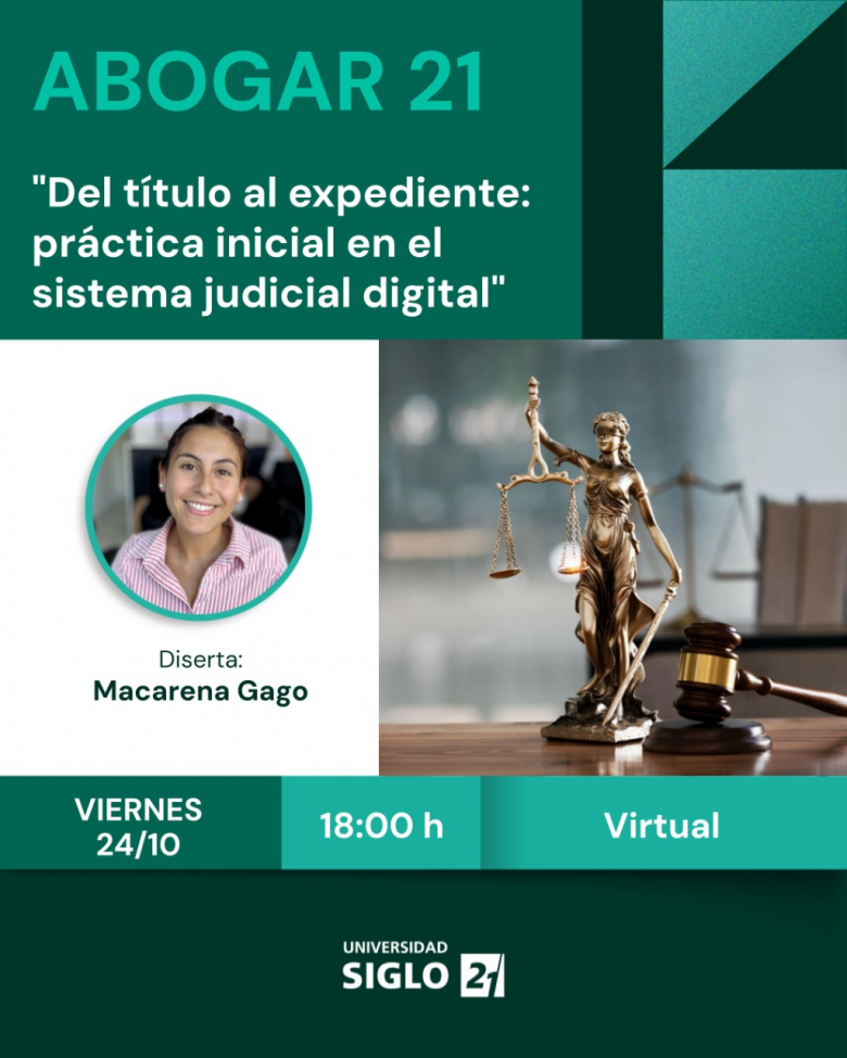 ¿Te interesa ampliar tus conocimientos? Desde el Ciclo “De la teoría a la praxis: herramientas para la inserción laboral” de *Abogar 21 te invitamos a participar de una actividad pensada especialmente para vos: "Del título al expediente: práctica inicial en el sistema judicial digital".