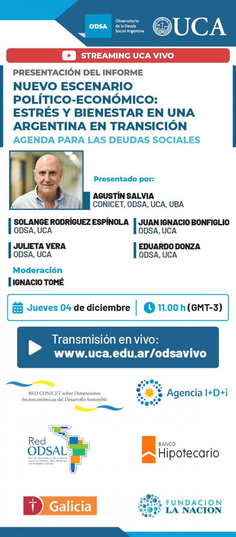 Transmisión en vivo por el canal de YouTube de la UCA: www.uca.edu.ar/odsavivo