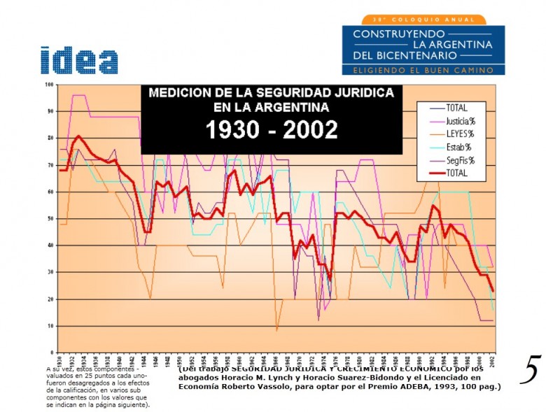 (3) V. LYNCH. Horacio M., SUAREZ BIDONDO, Horacio y VASSOLO, Roberto, “SEGURIDAD JURÍDICA Y CRECIMIENTO ECONÓMICO EN LA ARGENTINA”, mimeo, Buenos Aires, 1993, v. también LYNCH, Horacio M. y VASSOLO, Roberto, “MEDICIÓN E LA SEGURIDAD JURÍDICA”, ponencia presentada en la XVII Reunión Anual de la ASOCIACIÓN ARGENTINA DE ECONOMÍA POLITICA, Tucumán 10/2 Nov93. El trabajo fue incluído en el Cap. 2 del estudio preparado por FORES y el Colegio de Abogados de la Ciudad de Buenos Aires, para el CONSEJO EMPRESARIO ARGENTINO, “JUSTICIA Y DESARROLLO ECONÓMICO”, ed. CEA.1999. La versión completa está en < http://www.foresjusticia.org.ar/investigaciones/JusticiaCEA/Capitulo2.PDF>.