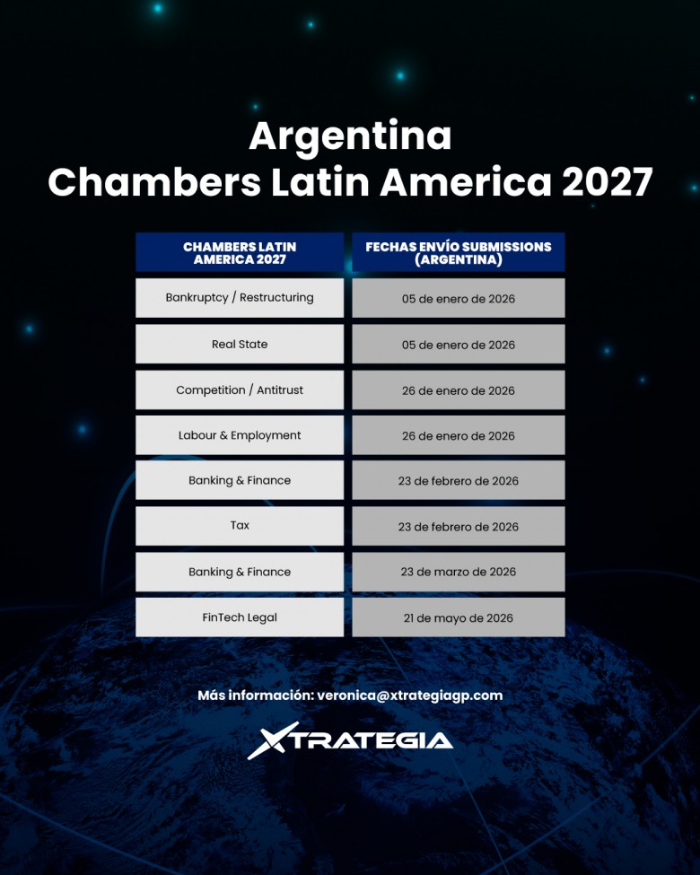 Chambers and Partners ya ha publicado el cronograma oficial de envío de submissions para Argentina en su edición Latin America 2027, un proceso clave para la visibilidad y posicionamiento regional de estudios jurídicos y abogados líderes.