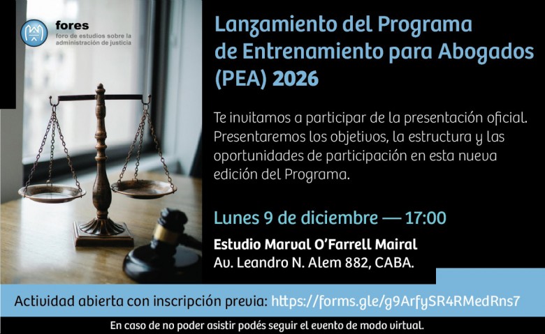 El Foro de Estudios sobre la Administración de Justicia (FORES) anuncia el relanzamiento del Programa de Entrenamiento para Abogados (PEA), una propuesta académica de excelencia destinada a acompañar la transición entre la formación y el ejercicio profesional del derecho.