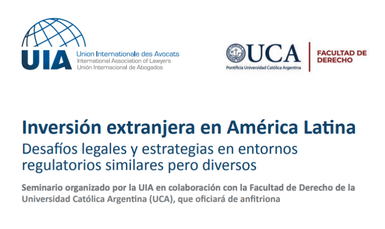El seminario se centrará en los aspectos legales de las inversiones extranjeras relacionadas con América Latina (LATAM). Si bien la Unión Europea, Estados Unidos, Canadá, Asia y otras regiones han contribuido consistentemente con importantes flujos de inversión, también existe un volumen considerable de inversiones entre los propios países latinoamericanos.