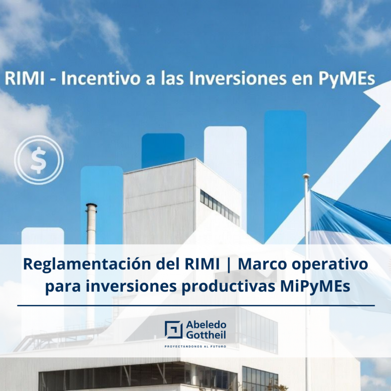 El lunes 13 de abril de 2026 se publicó la reglamentación del Régimen de Incentivo para Medianas Inversiones (RIMI), creado por la Ley N.º 27.802, mediante el dictado del Decreto N.º 242/2026 (https://www.boletinoficial.gob.ar/detalleAviso/primera/340606/20260413), estableciendo las condiciones operativas para su implementación. El régimen se propone como un esquema intermedio dentro de la política de promoción de inversiones, orientado a aquellas empresas que no poseen la capacidad financiera para realizar inversiones en el marco del Régimen de Grandes Inversiones (RIGI).