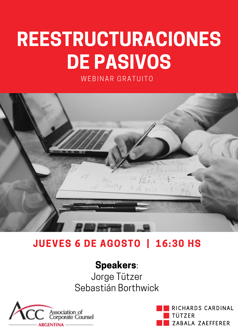 La Association of Corporate Counsel (ACC) Argentina y Richards, Cardinal, Tützer, Zabala & Zaefferer organizarán un webinar sobre "Reestructuraciones de pasivos".