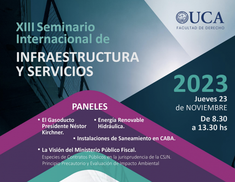 La Facultad de Derecho de la Universidad Católica Argentina (UCA) y el Estudio Ymaz Abogados invitan al XIII Seminario Internacional de Infraestructura y Servicios.